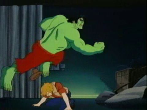 This where everything goes outta of proportion when the grey hulk suddenly bursts when he morphs back into the green hulk.